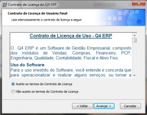 Selecione a opção para aceitar os termos de Contrato de Licença, depois clique no botão avançar: