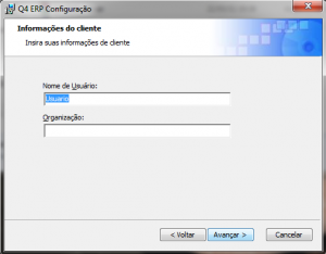 Na tela seguinte, você poderá incluir informações como usuário e organização – Essas informações não são obrigatórias, caso não queira informá-las basta clicar no botão avançar: